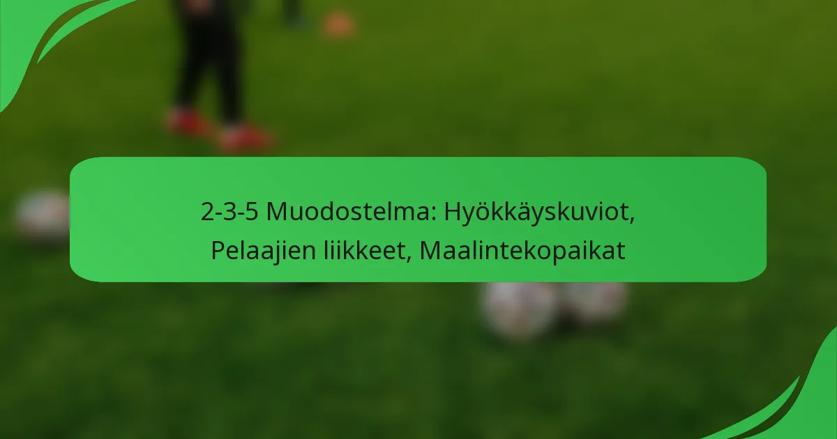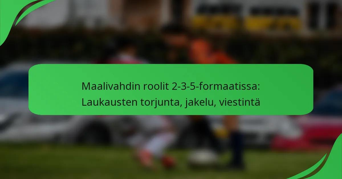 2-3-5-formaatiossa vapaapotkujen, rangaistuspotkujen ja kulmapotkujen erikoisroolit ovat elintärkeitä maalintekomahdollisuuksien parantamiseksi erikoistilanteissa. Jokainen erikoispelaaja tuo mukanaan ainutlaatuisia taitoja ja strategioita, jotka voivat merkittävästi vaikuttaa pelin lopputulokseen, mikä tekee heidän panoksestaan olennaisen joukkueen menestykselle. Mitkä ovat erikoisroolit 2-3-5-formaatiossa? 2-3-5-formaatiossa erikoisroolit, kuten vapaapotkujen suorittajat, rangaistuspotkujen asiantuntijat ja kulmapotkujen suorittajat, ovat ratkaisevia maalintekomahdollisuuksien maksimoimiseksi. Jokainen rooli vaatii erityisiä taitoja […]