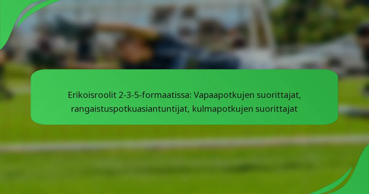 Erikoisroolit 2-3-5-formaatissa: Vapaapotkujen suorittajat, rangaistuspotkuasiantuntijat, kulmapotkujen suorittajat